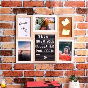 Este quadro multifuncional é ideal para organizar memórias e lembretes de forma prática e estilosa. Com espaço para três fotos de 10x15 cm (duas verticais e uma horizontal), ele também inclui uma lousa para anotações rápidas e um espaço especial para post-its ou recados. Acompanha ainda um letreiro com 142 peças, incluindo letras e símbolos, para criar mensagens personalizadas.
