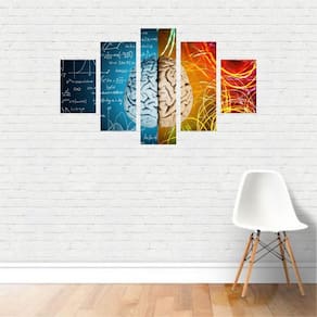 Quadro Mente Psicologia Cálculos Decorativo Canvas Ne15C5PConhecendo mais sobre o quadro de tela canvas:Fabricação:Todo nosso processo é de fabricação própria e cuidamos cada detalhe para que seu quadro saia em perfeitas condições e que você tenha um impacto visual inesquecível.Impressão: Altíssima qualidade, sem dúvida a melhor opção para impressão em tecido canvas, realçando os detalhes, deixando suas telas com aparência natural e mantendo as cores vivas por anosCanvas:Sua experiência com esse material será inesquecível, pode achar que não conhece tecido canvas, com certeza você já deve ter visto um quadro em tela, como uma pintura ou em um museu, pois o mesmo é utilizado para as mais belas pinturas.O tecido canvas é um material 100% algodão com preparação especial com tratamento anti bacteriano e antimofo e com verniz semibrilho, apropriada para a impressão.Chassi madeira :É a estrutura de madeira eucalipto beneficiado de reflorestamento onde o tecido impresso é esticado cuidadosamente. A melhor estrutura para quadros e telas com madeira de 3 x2,3cm de espessura, chanfrada para não marcar a parte frontal de sua tela, é grampeada pelo verso dando um acabamento especial, onde suas imagens aparecem até mesmo na volta da madeiraAssim seu quadro chega pronto para pendurar e não necessita de molduraEmbalagem:Feita cuidadosamente envolvendo as peças com filme stretch pvc, para que diminua quase a zero as chances de marcar de alguma maneira seu quadro no transporte.O mesmo é colocado em uma caixa feita especialmente para o seu tamanho de quadro, assim seu quadro fica bem mais firme dentro da embalagem.Tamanho:Conjunto de 5 quadros conjugados com imagem em continuidade com medida total de 110x65cm, sendo: 2 quadros de 20x30cm;2 quadros de 20x50cm;1 quadros de 20x65cm;Acompanha manual com dicas de instalação.