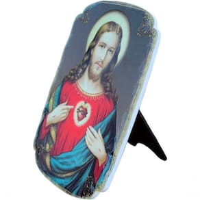 1 Quadro De Mesa Colecionável Sagrad Coração De Jesus De 14x20cm;