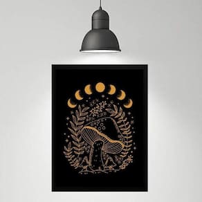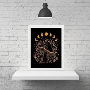 Quadro místico cogumelo - fases da lua 33x24cm Moldura: madeira branca Informações do produto tire todas as suas dúvidas no descritivo abaixo: decoração para quarto, sala, cozinha, escritório, área gourmet e muito mais. Chega de paredes vazias medidas - cada peça tem 33x24cm a4 . Material do papel - papel fotográfico brilhante de altíssima resolução acabamento - todos os quadros são acompanhados de uma película de acetato para proteção da imagem. - os quadros são embalados de forma segura com plástico bolha com camada dupla de acordo com o tamanho dos quadros. Garantia - garantia de 3 meses. Meu quadro chegou. Como posso fixá-lo Você precisa apenas de um martelo e um prego, pois os quadros já vão acompanhados de penduradores. Esta é a forma mais indicada. Caso prefira, você pode utilizar uma fita dupla face neste caso, sugerimos de alta qualidade para evitar que descole e seu quadro caia . Como posso limpar meu quadro A limpeza é feita como um móvel comum da sua casa. Apenas um pano seco ou espanador são suficientes para tal