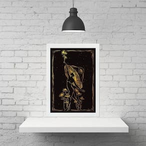 Quadro místico mulher cogumelo 45x34cm - com vidro Moldura: madeira branca Informações do produto tire todas as suas dúvidas no descritivo abaixo: decoração para quarto, sala, cozinha, escritório, área gourmet e muito mais. Chega de paredes vazias medidas - cada peça tem 45x34cm a3 . Material do papel - papel fotográfico brilhante de altíssima resolução acabamento - todos os quadros são acompanhados de vidro para proteção da imagem. - moldura em madeira maciça na cor preta ou branca conforme produto escolhido e pendurador . - os quadros são embalados de forma segura com plástico bolha com camada dupla de acordo com o tamanho dos quadros. Garantia - garantia de 3 meses. Meu quadro chegou. Como posso fixá-lo Você precisa apenas de um martelo e um prego, pois os quadros já vão acompanhados de penduradores. Esta é a forma mais indicada. Como posso limpar meu quadro A limpeza é feita como um móvel comum da sua casa. Apenas um pano seco ou espanador são suficientes para tal
