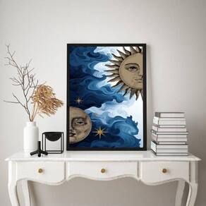 Quadro mistico sol e lua - metades aquarela 33x24cm Cor: moldura preta Informações do produto tire todas as suas dúvidas no descritivo abaixo: decoração para quarto, sala, cozinha, escritório, área gourmet e muito mais. Chega de paredes vazias medidas - cada peça tem 33x24cm a4 . Material do papel - papel fotográfico brilhante de altíssima resolução acabamento - todos os quadros são acompanhados de uma película de acetato para proteção da imagem. - os quadros são embalados de forma segura com plástico bolha com camada dupla de acordo com o tamanho dos quadros. - de 3 meses. Meu quadro chegou. Como posso fixá-lo Você precisa apenas de um martelo e um prego, pois os quadros já vão acompanhados de penduradores. Esta é a forma mais indicada. Caso prefira, você pode utilizar uma fita dupla face neste caso, sugerimos de alta qualidade para evitar que descole e seu quadro caia . Como posso limpar meu quadro A limpeza é feita como um móvel comum da sua casa. Apenas um pano seco ou espanador são suficientes para tal Marca: Não Informado