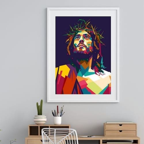 Quadro moderno jesus- 60x48cm Moldura: madeira preta Informações do produto tire todas as suas dúvidas no descritivo abaixo: decoração para quarto, sala, cozinha, escritório, área gourmet e muito mais. Chega de paredes vazias medidas - cada peça tem 60x48cm . Material do papel - papel fotográfico brilhante de altíssima resolução acabamento - todos os quadros são acompanhados de vidro para proteção da imagem. - moldura em madeira maciça na cor preta ou branca conforme produto escolhido e pendurador. - paspatur branco com 7cm de largura - os quadros são embalados de forma segura com plástico bolha com camada dupla de acordo com o tamanho dos quadros. - de 3 meses. Meu quadro chegou. Como posso fixá-lo Você precisa apenas de um martelo e um prego, pois os quadros já vão acompanhados de penduradores. Esta é a forma mais indicada. Como posso limpar meu quadro A limpeza é feita como um móvel comum da sua casa. Apenas um pano seco ou espanador são suficientes para tal Marca: Não Informado