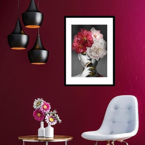 Quadro moderno mulher cabeça flores - 60x48cm Moldura: madeira preta Informações do produto tire todas as suas dúvidas no descritivo abaixo: decoração para quarto, sala, cozinha, escritório, área gourmet e muito mais. Chega de paredes vazias medidas - cada peça tem 60x48cm . Material do papel - papel fotográfico brilhante de altíssima resolução acabamento - todos os quadros são acompanhados de vidro para proteção da imagem. - moldura em madeira maciça na cor preta ou branca conforme produto escolhido e pendurador. - paspatur branco com 7cm de largura - os quadros são embalados de forma segura com plástico bolha com camada dupla de acordo com o tamanho dos quadros. Garantia - garantia de 3 meses. Meu quadro chegou. Como posso fixá-lo Você precisa apenas de um martelo e um prego, pois os quadros já vão acompanhados de penduradores. Esta é a forma mais indicada. Como posso limpar meu quadro A limpeza é feita como um móvel comum da sua casa. Apenas um pano seco ou espanador são suficientes para tal