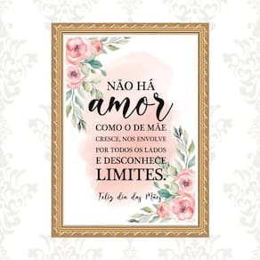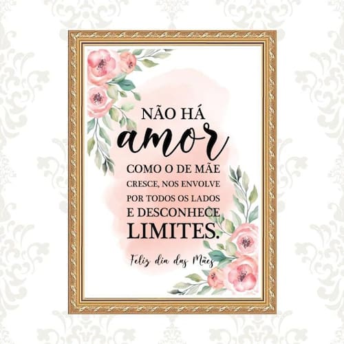 Quadro moldura dourada amor de mãe 45x34cm Acabamento: com vidro Informações do produto tire todas as suas dúvidas no descritivo abaixo: decoração para quarto, sala, cozinha, escritório, área gourmet e muito mais. Chega de paredes vazias. Medidas - cada peça tem 45x34cm a3 . Material do papel - papel fotográfico brilhante de altíssima resolução acabamento - todos os quadros são acompanhados de vidro ou uma película de acetato para proteção da imagem conforme escolha . - os quadros são embalados de forma segura com plástico bolha com camada dupla de acordo com o tamanho dos quadros. Garantia - garantia de 3 meses. Meu quadro chegou. Como posso fixá-lo Você precisa apenas de um martelo e um prego, pois os quadros já vão acompanhados de penduradores. Esta é a forma mais indicada. Caso prefira, você pode utilizar uma fita dupla face neste caso, sugerimos de alta qualidade para evitar que descole e seu quadro caia . Como posso limpar meu quadro A limpeza é feita como um móvel comum da sua casa. Apenas um pano seco ou espanador são suficientes para tal