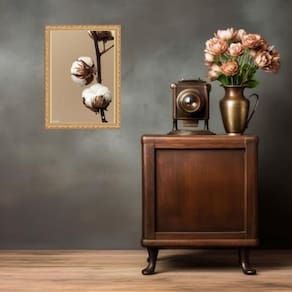 Quadro moldura dourada flor de algodão 24x18cm Acabamento: com vidro Informações do produto tire todas as suas dúvidas no descritivo abaixo: decoração para quarto, sala, cozinha, escritório, área gourmet e muito mais. Chega de paredes vazias medidas - cada peça tem 24x18cm a5 . Material do papel - papel fotográfico brilhante de altíssima resolução acabamento - todos os quadros são acompanhados de vidro ou uma película de acetato para proteção da imagem conforme escolha . - os quadros são embalados de forma segura com plástico bolha com camada dupla de acordo com o tamanho dos quadros. Garantia - garantia de 3 meses. Meu quadro chegou. Como posso fixá-lo Você precisa apenas de um martelo e um prego, pois os quadros já vão acompanhados de penduradores. Esta é a forma mais indicada. Caso prefira, você pode utilizar uma fita dupla face neste caso, sugerimos de alta qualidade para evitar que descole e seu quadro caia . Como posso limpar meu quadro A limpeza é feita como um móvel comum da sua casa. Apenas um pano seco ou espanador são suficientes para tal