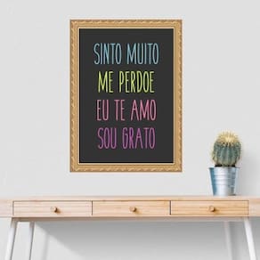Quadro moldura dourada - ho'oponopono 24x18cm Acabamento: com acetato Informações do produto tire todas as suas dúvidas no descritivo abaixo: decoração para quarto, sala, cozinha, escritório, área gourmet e muito mais. Chega de paredes vazias medidas - cada peça tem 24x18cm a5 . Material do papel - papel fotográfico brilhante de altíssima resolução acabamento - todos os quadros são acompanhados de vidro ou uma película de acetato para proteção da imagem conforme escolha . - os quadros são embalados de forma segura com plástico bolha com camada dupla de acordo com o tamanho dos quadros. - de 3 meses. Meu quadro chegou. Como posso fixá-lo Você precisa apenas de um martelo e um prego, pois os quadros já vão acompanhados de penduradores. Esta é a forma mais indicada. Caso prefira, você pode utilizar uma fita dupla face neste caso, sugerimos de alta qualidade para evitar que descole e seu quadro caia . Como posso limpar meu quadro A limpeza é feita como um móvel comum da sua casa. Apenas um pano seco ou espanador são suficientes para tal Marca: Não Informado Ean: 7897647647322