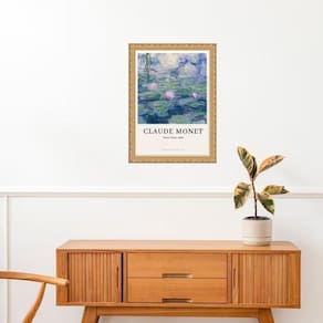 Quadro moldura dourada monet - lilies 24x18cm Acabamento: com vidro Informações do produto tire todas as suas dúvidas no descritivo abaixo: decoração para quarto, sala, cozinha, escritório, área gourmet e muito mais. Chega de paredes vazias medidas - cada peça tem 24x18cm a5 . Material do papel - papel fotográfico brilhante de altíssima resolução acabamento - todos os quadros são acompanhados de vidro ou uma película de acetato para proteção da imagem conforme escolha . - os quadros são embalados de forma segura com plástico bolha com camada dupla de acordo com o tamanho dos quadros. Garantia - garantia de 3 meses. Meu quadro chegou. Como posso fixá-lo Você precisa apenas de um martelo e um prego, pois os quadros já vão acompanhados de penduradores. Esta é a forma mais indicada. Caso prefira, você pode utilizar uma fita dupla face neste caso, sugerimos de alta qualidade para evitar que descole e seu quadro caia . Como posso limpar meu quadro A limpeza é feita como um móvel comum da sua casa. Apenas um pano seco ou espanador são suficientes para tal