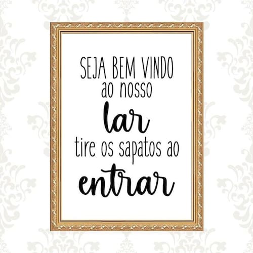 Quadro moldura dourada tire os sapatos 45x34cm Acabamento: com acetato Informações do produto tire todas as suas dúvidas no descritivo abaixo: decoração para quarto, sala, cozinha, escritório, área gourmet e muito mais. Chega de paredes vazias. Medidas - cada peça tem 45x34cm a3 . Material do papel - papel fotográfico brilhante de altíssima resolução acabamento - todos os quadros são acompanhados de vidro ou uma película de acetato para proteção da imagem conforme escolha . - os quadros são embalados de forma segura com plástico bolha com camada dupla de acordo com o tamanho dos quadros. Garantia - garantia de 3 meses. Meu quadro chegou. Como posso fixá-lo Você precisa apenas de um martelo e um prego, pois os quadros já vão acompanhados de penduradores. Esta é a forma mais indicada. Caso prefira, você pode utilizar uma fita dupla face neste caso, sugerimos de alta qualidade para evitar que descole e seu quadro caia . Como posso limpar meu quadro A limpeza é feita como um móvel comum da sua casa. Apenas um pano seco ou espanador são suficientes para tal