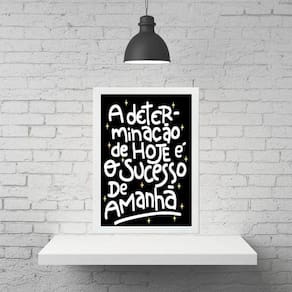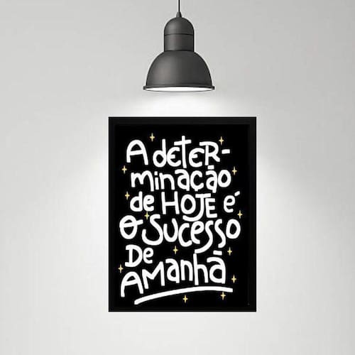 Quadro motivacional determinação sucesso 45x34cm - com vidro Moldura: madeira preta Informações do produto tire todas as suas dúvidas no descritivo abaixo: decoração para quarto, sala, cozinha, escritório, área gourmet e muito mais. Chega de paredes vazias medidas - cada peça tem 45x34cm a3 . Material do papel - papel fotográfico brilhante de altíssima resolução acabamento - todos os quadros são acompanhados de vidro para proteção da imagem. - moldura em madeira maciça na cor preta ou branca conforme produto escolhido e pendurador . - os quadros são embalados de forma segura com plástico bolha com camada dupla de acordo com o tamanho dos quadros. Garantia - garantia de 3 meses. Meu quadro chegou. Como posso fixá-lo Você precisa apenas de um martelo e um prego, pois os quadros já vão acompanhados de penduradores. Esta é a forma mais indicada. Como posso limpar meu quadro A limpeza é feita como um móvel comum da sua casa. Apenas um pano seco ou espanador são suficientes para tal