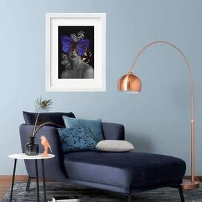 Quadro mulher borboleta azul - 60x48cm Moldura: madeira preta Informações do produto tire todas as suas dúvidas no descritivo abaixo: decoração para quarto, sala, cozinha, escritório, área gourmet e muito mais. Chega de paredes vazias medidas - cada peça tem 60x48cm . Material do papel - papel fotográfico brilhante de altíssima resolução acabamento - todos os quadros são acompanhados de vidro para proteção da imagem. - moldura em madeira maciça na cor preta ou branca conforme produto escolhido e pendurador. - paspatur branco com 7cm de largura - os quadros são embalados de forma segura com plástico bolha com camada dupla de acordo com o tamanho dos quadros. Garantia - garantia de 3 meses. Meu quadro chegou. Como posso fixá-lo Você precisa apenas de um martelo e um prego, pois os quadros já vão acompanhados de penduradores. Esta é a forma mais indicada. Como posso limpar meu quadro A limpeza é feita como um móvel comum da sua casa. Apenas um pano seco ou espanador são suficientes para tal