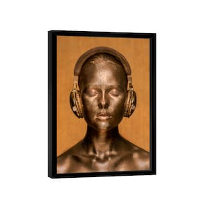 Quadro Mulher Dourada de Fone -- BR ARTES Moldura Dourada - Ultra Grande 150x100 -