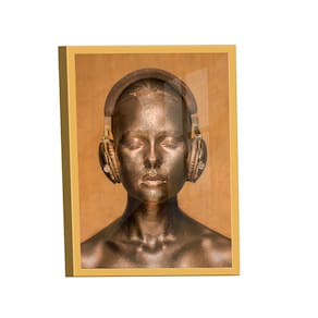 Quadro Mulher Dourada de Fone -- BR ARTES Moldura Branca e Vidro - Ultra Grande 150x100 -