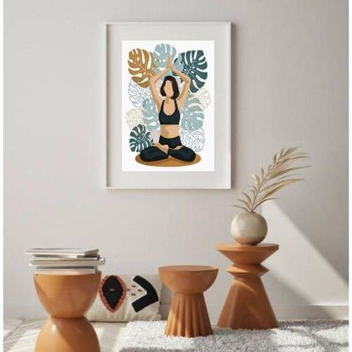 Quadro mulher yoga- fundo folhas - 60x48cm Moldura: madeira branca Informações do produto tire todas as suas dúvidas no descritivo abaixo: decoração para quarto, sala, cozinha, escritório, área gourmet e muito mais. Chega de paredes vazias medidas - cada peça tem 60x48cm . Material do papel - papel fotográfico brilhante de altíssima resolução acabamento - todos os quadros são acompanhados de vidro para proteção da imagem. - moldura em madeira maciça na cor preta ou branca conforme produto escolhido e pendurador. - paspatur branco com 7cm de largura - os quadros são embalados de forma segura com plástico bolha com camada dupla de acordo com o tamanho dos quadros. Garantia - garantia de 3 meses. Meu quadro chegou. Como posso fixá-lo Você precisa apenas de um martelo e um prego, pois os quadros já vão acompanhados de penduradores. Esta é a forma mais indicada. Como posso limpar meu quadro A limpeza é feita como um móvel comum da sua casa. Apenas um pano seco ou espanador são suficientes para tal