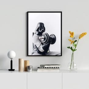 Quadro musculação - darth 24x18cm Cor: moldura branca Informações do produto tire todas as suas dúvidas no descritivo abaixo: decoração para quarto, sala, cozinha, escritório, área gourmet e muito mais. Chega de paredes vazias medidas - cada peça tem 24x18cm a5 . Material do papel - papel fotográfico brilhante de altíssima resolução acabamento - todos os quadros são acompanhados de uma película de acetato para proteção da imagem. - os quadros são embalados de forma segura com plástico bolha com camada dupla de acordo com o tamanho dos quadros. Garantia - garantia de 3 meses. Meu quadro chegou. Como posso fixá-lo Você precisa apenas de um martelo e um prego, pois os quadros já vão acompanhados de penduradores. Esta é a forma mais indicada. Caso prefira, você pode utilizar uma fita dupla face neste caso, sugerimos de alta qualidade para evitar que descole e seu quadro caia . Como posso limpar meu quadro A limpeza é feita como um móvel comum da sua casa. Apenas um pano seco ou espanador são suficientes para tal