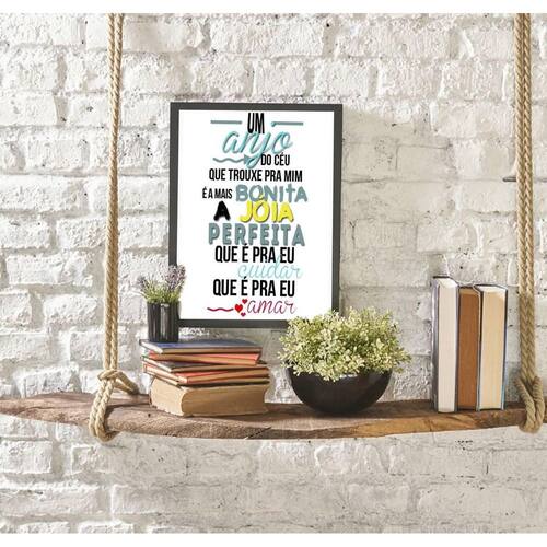 Quadro música um anjo do céu 24x18cm - com vidro Moldura: madeira preta Informações do produto Decoração para quarto, sala, cozinha, escritório, área gourmet e muito mais. Chega de paredes vazias Medidas - cada peça tem 24x18cm a5 . Material do papel - papel fotográfico brilhante de altíssima resolução acabamento - todos os quadros são acompanhados de vidro para proteção da imagem. - moldura em madeira maciça na cor preta e pendurador . - os quadros são embalados de forma segura com plástico bolha com camada dupla de acordo com o tamanho dos quadros. - de 3 meses. Meu quadro chegou. Como posso fixá-lo Você precisa apenas de um martelo e um prego, pois os quadros já vão acompanhados de penduradores. Esta é a forma mais indicada. Como posso limpar meu quadro A limpeza é feita como um móvel comum da sua casa. Apenas um pano seco ou espanador são suficientes para tal Marca: Não Informado