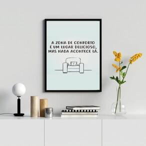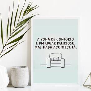Quadro nada acontece na zona de conforto 24x18cm Moldura: madeira preta Informações do produto tire todas as suas dúvidas no descritivo abaixo: decoração para quarto, sala, cozinha, escritório, área gourmet e muito mais. Chega de paredes vazias medidas - cada peça tem 24x18cm a5 . Material do papel - papel fotográfico brilhante de altíssima resolução acabamento - todos os quadros são acompanhados de uma película de acetato para proteção da imagem. - os quadros são embalados de forma segura com plástico bolha com camada dupla de acordo com o tamanho dos quadros. Garantia - garantia de 3 meses. Meu quadro chegou. Como posso fixá-lo Você precisa apenas de um martelo e um prego, pois os quadros já vão acompanhados de penduradores. Esta é a forma mais indicada. Caso prefira, você pode utilizar uma fita dupla face neste caso, sugerimos de alta qualidade para evitar que descole e seu quadro caia . Como posso limpar meu quadro A limpeza é feita como um móvel comum da sua casa. Apenas um pano seco ou espanador são suficientes para tal