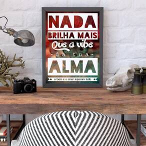 Quadro nada brilha mais que a alma 45x34cm - com vidro Moldura: madeira preta Informações do produto tire todas as suas dúvidas no descritivo abaixo: decoração para quarto, sala, cozinha, escritório, área gourmet e muito mais. Chega de paredes vazias medidas - cada peça tem 45x34cm a3 . Material do papel - papel fotográfico brilhante de altíssima resolução acabamento - todos os quadros são acompanhados de vidro para proteção da imagem. - moldura em madeira maciça na cor preta ou branca conforme produto escolhido e pendurador . - os quadros são embalados de forma segura com plástico bolha com camada dupla de acordo com o tamanho dos quadros. Garantia - garantia de 3 meses. Meu quadro chegou. Como posso fixá-lo Você precisa apenas de um martelo e um prego, pois os quadros já vão acompanhados de penduradores. Esta é a forma mais indicada. Como posso limpar meu quadro A limpeza é feita como um móvel comum da sua casa. Apenas um pano seco ou espanador são suficientes para tal