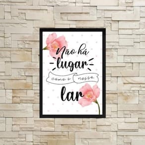 Quadro não há lugar como nosso lar 33x24cm - com vidro Moldura: madeira branca Informações do produto tire todas as suas dúvidas no descritivo abaixo: decoração para quarto, sala, cozinha, escritório, área gourmet e muito mais. Chega de paredes vazias medidas - cada peça tem 33x24cm a4 . Material do papel - papel fotográfico brilhante de altíssima resolução acabamento - todos os quadros são acompanhados de vidro para proteção da imagem. - moldura em madeira maciça na cor preta e pendurador . - os quadros são embalados de forma segura com plástico bolha com camada dupla de acordo com o tamanho dos quadros. - de 3 meses. Meu quadro chegou. Como posso fixá-lo Você precisa apenas de um martelo e um prego, pois os quadros já vão acompanhados de penduradores. Esta é a forma mais indicada. Como posso limpar meu quadro A limpeza é feita como um móvel comum da sua casa. Apenas um pano seco ou espanador são suficientes para tal Ean: 7895142239516