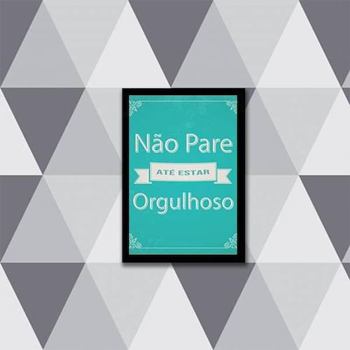 Quadro Não Pare Até Estar Orgulhoso 24X18Cm Moldura: madeira branca Informações do produto Decoração para quarto, sala, cozinha, escritório, área gourmet e muito mais. Chega de paredes vazias. Medidas - cada peça tem 24x18cm a5 . Material do papel - papel fotográfico brilhante de altíssima resolução Acabamento - todos os quadros são acompanhados de uma película de acetato para proteção da imagem. - moldura em madeira maciça na cor branca e pendurador móvel que pode ser retirado facilmente caso deseje fixar com fita dupla face. - os quadros são embalados de forma segura com plástico bolha com camada dupla de acordo com o tamanho dos quadros. - de 3 meses Meu quadro chegou. Como posso fixá-lo: Você precisa apenas de um martelo e um prego, pois os quadros já vão acompanhados de penduradores. Esta é a forma mais indicada. Caso prefira, você pode utilizar uma fita dupla face neste caso, sugerimos de alta qualidade para evitar que descole e seu quadro caia . Como posso limpar meu quadro: A limpeza é feita como um móvel comum da sua casa. Apenas um pano seco ou espanador são suficientes para tal Marca: Não Informado