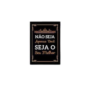 Quadro não seja apenas você, seja o seu melhor 45x34cm - com vidro Moldura: madeira preta Informações do produto tire todas as suas dúvidas no descritivo abaixo: decoração para quarto, sala, cozinha, escritório, área gourmet e muito mais. Chega de paredes vazias medidas - cada peça tem 45x34cm a3 . Material do papel - papel fotográfico brilhante de altíssima resolução acabamento - todos os quadros são acompanhados de vidro para proteção da imagem. - moldura em madeira maciça na cor preta e pendurador . - os quadros são embalados de forma segura com plástico bolha com camada dupla de acordo com o tamanho dos quadros. Garantia - garantia de 3 meses. Meu quadro chegou. Como posso fixá-lo Você precisa apenas de um martelo e um prego, pois os quadros já vão acompanhados de penduradores. Esta é a forma mais indicada. Como posso limpar meu quadro A limpeza é feita como um móvel comum da sua casa. Apenas um pano seco ou espanador são suficientes para tal
