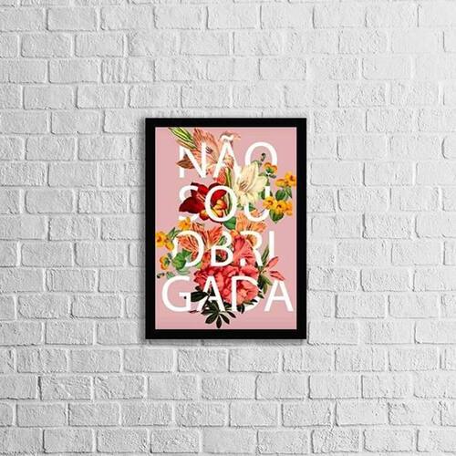 Quadro não sou obrigada fundo rosa 45x34cm - com vidro Moldura: madeira preta Informações do produto tire todas as suas dúvidas no descritivo abaixo: decoração para quarto, sala, cozinha, escritório, área gourmet e muito mais. Chega de paredes vazias medidas - cada peça tem 45x34cm a3 . Material do papel - papel fotográfico brilhante de altíssima resolução acabamento - todos os quadros são acompanhados de vidro para proteção da imagem. - moldura em madeira maciça na cor preta e pendurador . - os quadros são embalados de forma segura com plástico bolha com camada dupla de acordo com o tamanho dos quadros. - de 3 meses. Meu quadro chegou. Como posso fixá-lo Você precisa apenas de um martelo e um prego, pois os quadros já vão acompanhados de penduradores. Esta é a forma mais indicada. Como posso limpar meu quadro A limpeza é feita como um móvel comum da sua casa. Apenas um pano seco ou espanador são suficientes para tal Ean: 7895142166805