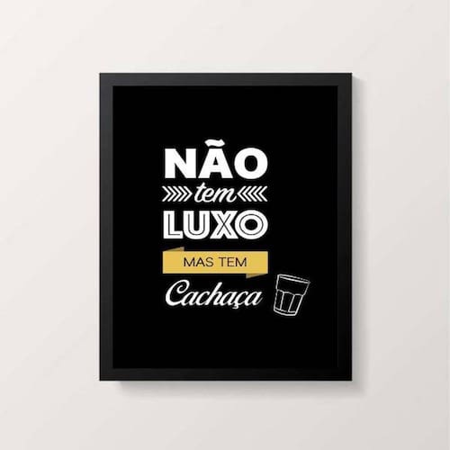 Quadro Não Tem Luxo Mas Tem Cachaça - Acabamento: Película de acetato / Moldura: Madeira preta / Tamanho: A4 (20 X 30)