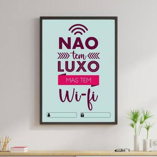 O Quadro Decorativo Não Tem Luxo Mas Tem Wi-Fi - Azul 24 x 18 Cm A5 é perfeito para a decorar o seu ambiente de forma moderna e charmosa. O quadro é fácil de instalar pois vai acompanhado de pendurador e simples de limpar, apenas um pano seco ou espanador é suficiente para manter o seu quadro conservado. Características: - O papel fotográfico possui alta resolução - Acompanha vidro para proteção da imagem - Fácil de instalar Especificações Marca: Quadros On-Line Temática do quadro: tema Modelo: Não Tem Luxo Mas Tem Wi-Fi - Azul Material do papel: Fotográfico brilhante Material da moldura: Madeira Acompanha moldura: Sim Acompanha vidro: Sim Acompanha pendurador: Sim Cor da moldura: Preta Medidas: 24 x 18 cm : 3 meses Itens inclusos 01 Quadro Decorativo Não Tem Luxo Mas Tem Wi-Fi - Azul 24 x 18 Cm Sobre a Quadros On-Line Criada há mais de 30 anos em Belo Horizonte, a Quadros On-Line é uma referência na cidade, sempre prezando a criação de produtos de alta qualidade e excelência no atendimento. Além dos artigos decorativos, confecciona e comercializa obras de arte também.