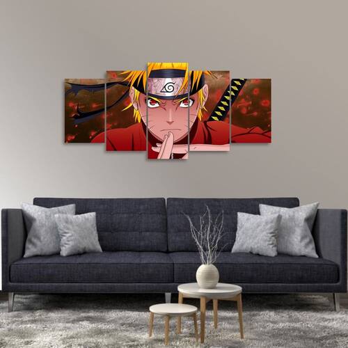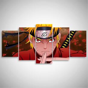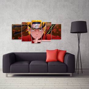 Quadro Naruto Uzumaki decorativo Dimensões do Produto: Tamanho total do produto: 125x60 cm Comprimento x Altura 02 Peças menores: 25x40 cm 02 Peças Médias: 25x50 cm 01 Peça Central: 25x60 cm. Espaçamento entre as peças de 1 cm - Tamanho total com espaçamentos 129x60 cm. Espessura do produto - 9 mm