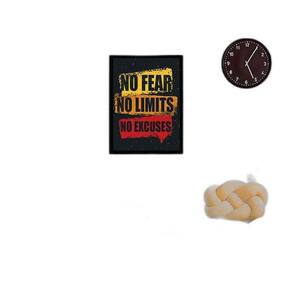 Quadro no fear, no limits, no excuses 24x18cm Moldura: madeira preta Informações do produto tire todas as suas dúvidas no descritivo abaixo: decoração para quarto, sala, cozinha, escritório, área gourmet e muito mais. Chega de paredes vazias medidas - cada peça tem 24x18cm a5 . Material do papel - papel fotográfico brilhante de altíssima resolução acabamento - todos os quadros são acompanhados de uma película de acetato para proteção da imagem. - moldura em madeira maciça na cor branca e pendurador móvel que pode ser retirado facilmente caso deseje fixar com fita dupla face. - os quadros são embalados de forma segura com plástico bolha com camada dupla de acordo com o tamanho dos quadros. Garantia - garantia de 3 meses prazo de envio pedimos 24 horas úteis no máximo para enviar seu pedido após o envio, segue os prazos normais dos correios, cerca de 7 dias úteis exceto para norte e nordeste, que pode ser de até 14 dias úteis. Em diversas cidades, este prazo normalmente é reduzido, mas depende do prazo dos correios. Meu quadro chegou. Como posso fixá-lo Você precisa apenas de um martelo e um prego, pois os quadros já vão acompanhados de penduradores. Esta é a forma mais indicada. Caso prefira, você pode utilizar uma fita dupla face neste caso, sugerimos de alta qualidade para evitar que descole e seu quadro caia . Como posso limpar meu quadro A limpeza é feita como um móvel comum da sua casa. Apenas um pano seco ou espanador são suficientes para tal