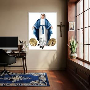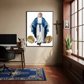 Quadro Nossa Senhora das Graças Medalhas - 70x50cm - Cor: Moldura Branca