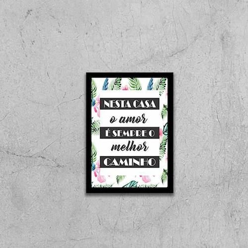 Quadro O Amor É Sempre O Melhor Caminho 24X18Cm Moldura: madeira branca Informações do produto Decoração para quarto, sala, cozinha, escritório, área gourmet e muito mais. Chega de paredes vazias. Medidas - cada peça tem 24x18cm a5 . Material do papel - papel fotográfico brilhante de altíssima resolução Acabamento - todos os quadros são acompanhados de uma película de acetato para proteção da imagem. - moldura em madeira maciça na cor branca e pendurador móvel que pode ser retirado facilmente caso deseje fixar com fita dupla face. - os quadros são embalados de forma segura com plástico bolha com camada dupla de acordo com o tamanho dos quadros. - de 3 meses Meu quadro chegou. Como posso fixá-lo: Você precisa apenas de um martelo e um prego, pois os quadros já vão acompanhados de penduradores. Esta é a forma mais indicada. Caso prefira, você pode utilizar uma fita dupla face neste caso, sugerimos de alta qualidade para evitar que descole e seu quadro caia . Como posso limpar meu quadro: A limpeza é feita como um móvel comum da sua casa. Apenas um pano seco ou espanador são suficientes para tal Ean: 7892091054856