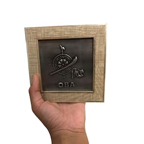Quadro Obá Orixá Madeira Carvalho e Metal 13 x13 cm