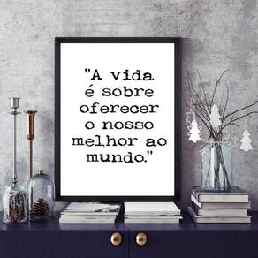 Quadro oferecer o melhor ao mundo 45x34cm Cor: moldura branca Informações do produto tire todas as suas dúvidas no descritivo abaixo: decoração para quarto, sala, cozinha, escritório, área gourmet e muito mais. Chega de paredes vazias. Medidas - cada peça tem 45x34cm a3 . Material do papel - papel fotográfico brilhante de altíssima resolução acabamento - todos os quadros são acompanhados de uma película de acetato para proteção da imagem. - os quadros são embalados de forma segura com plástico bolha com camada dupla de acordo com o tamanho dos quadros. Garantia - garantia de 3 meses. Meu quadro chegou. Como posso fixá-lo Você precisa apenas de um martelo e um prego, pois os quadros já vão acompanhados de penduradores. Esta é a forma mais indicada. Caso prefira, você pode utilizar uma fita dupla face neste caso, sugerimos de alta qualidade para evitar que descole e seu quadro caia . Como posso limpar meu quadro A limpeza é feita como um móvel comum da sua casa. Apenas um pano seco ou espanador são suficientes para tal