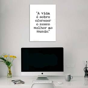 Quadro oferecer o melhor ao mundo 45x34cm Cor: moldura branca Informações do produto tire todas as suas dúvidas no descritivo abaixo: decoração para quarto, sala, cozinha, escritório, área gourmet e muito mais. Chega de paredes vazias. Medidas - cada peça tem 45x34cm a3 . Material do papel - papel fotográfico brilhante de altíssima resolução acabamento - todos os quadros são acompanhados de uma película de acetato para proteção da imagem. - os quadros são embalados de forma segura com plástico bolha com camada dupla de acordo com o tamanho dos quadros. Garantia - garantia de 3 meses. Meu quadro chegou. Como posso fixá-lo Você precisa apenas de um martelo e um prego, pois os quadros já vão acompanhados de penduradores. Esta é a forma mais indicada. Caso prefira, você pode utilizar uma fita dupla face neste caso, sugerimos de alta qualidade para evitar que descole e seu quadro caia . Como posso limpar meu quadro A limpeza é feita como um móvel comum da sua casa. Apenas um pano seco ou espanador são suficientes para tal