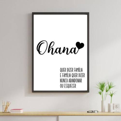 Quadro ohana - quer dizer família 24x18cm Moldura: madeira preta Informações do produto tire todas as suas dúvidas no descritivo abaixo: decoração para quarto, sala, cozinha, escritório, área gourmet e muito mais. Chega de paredes vazias medidas - cada peça tem 24x18cm a5 . Material do papel - papel fotográfico brilhante de altíssima resolução acabamento - todos os quadros são acompanhados de uma película de acetato para proteção da imagem. - moldura em madeira maciça na cor branca e pendurador móvel que pode ser retirado facilmente caso deseje fixar com fita dupla face. - os quadros são embalados de forma segura com plástico bolha com camada dupla de acordo com o tamanho dos quadros. Garantia - garantia de 3 meses prazo de envio pedimos 24 horas úteis no máximo para enviar seu pedido após o envio, segue os prazos normais dos correios, cerca de 7 dias úteis exceto para norte e nordeste, que pode ser de até 14 dias úteis. Em diversas cidades, este prazo normalmente é reduzido, mas depende do prazo dos correios. Meu quadro chegou. Como posso fixá-lo Você precisa apenas de um martelo e um prego, pois os quadros já vão acompanhados de penduradores. Esta é a forma mais indicada. Caso prefira, você pode utilizar uma fita dupla face neste caso, sugerimos de alta qualidade para evitar que descole e seu quadro caia . Como posso limpar meu quadro A limpeza é feita como um móvel comum da sua casa. Apenas um pano seco ou espanador são suficientes para tal Ean: 7892091066347