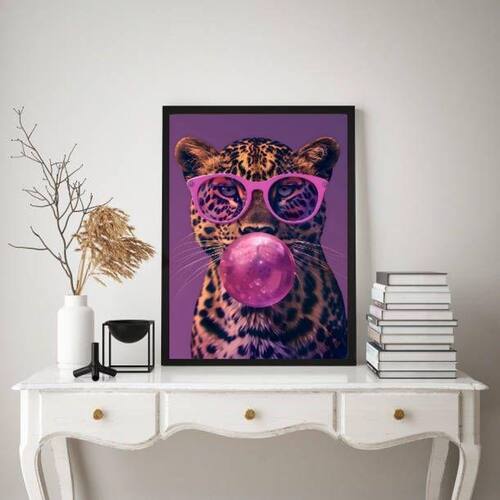 Quadro onça rosa roxo bubble gum 33x24cm Cor: moldura branca Informações do produto tire todas as suas dúvidas no descritivo abaixo: decoração para quarto, sala, cozinha, escritório, área gourmet e muito mais. Chega de paredes vazias medidas - cada peça tem 33x24cm a4 . Material do papel - papel fotográfico brilhante de altíssima resolução acabamento - todos os quadros são acompanhados de uma película de acetato para proteção da imagem. - os quadros são embalados de forma segura com plástico bolha com camada dupla de acordo com o tamanho dos quadros. - de 3 meses. Meu quadro chegou. Como posso fixá-lo Você precisa apenas de um martelo e um prego, pois os quadros já vão acompanhados de penduradores. Esta é a forma mais indicada. Caso prefira, você pode utilizar uma fita dupla face neste caso, sugerimos de alta qualidade para evitar que descole e seu quadro caia . Como posso limpar meu quadro A limpeza é feita como um móvel comum da sua casa. Apenas um pano seco ou espanador são suficientes para tal