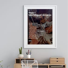 Quadro oração a são miguel arcanjo - 60x48cm Moldura: madeira branca Informações do produto tire todas as suas dúvidas no descritivo abaixo: decoração para quarto, sala, cozinha, escritório, área gourmet e muito mais. Chega de paredes vazias medidas - cada peça tem 60x48cm . Material do papel - papel fotográfico brilhante de altíssima resolução acabamento - todos os quadros são acompanhados de vidro para proteção da imagem. - moldura em madeira maciça na cor preta ou branca conforme produto escolhido e pendurador. - paspatur branco com 7cm de largura - os quadros são embalados de forma segura com plástico bolha com camada dupla de acordo com o tamanho dos quadros. Garantia - garantia de 3 meses. Meu quadro chegou. Como posso fixá-lo Você precisa apenas de um martelo e um prego, pois os quadros já vão acompanhados de penduradores. Esta é a forma mais indicada. Como posso limpar meu quadro A limpeza é feita como um móvel comum da sua casa. Apenas um pano seco ou espanador são suficientes para tal