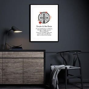 Quadro oração de são bento - 60x48cm Moldura: madeira preta Informações do produto tire todas as suas dúvidas no descritivo abaixo: decoração para quarto, sala, cozinha, escritório, área gourmet e muito mais. Chega de paredes vazias medidas - cada peça tem 60x48cm . Material do papel - papel fotográfico brilhante de altíssima resolução acabamento - todos os quadros são acompanhados de vidro para proteção da imagem. - moldura em madeira maciça na cor preta ou branca conforme produto escolhido e pendurador. - paspatur branco com 7cm de largura - os quadros são embalados de forma segura com plástico bolha com camada dupla de acordo com o tamanho dos quadros. Garantia - garantia de 3 meses. Meu quadro chegou. Como posso fixá-lo Você precisa apenas de um martelo e um prego, pois os quadros já vão acompanhados de penduradores. Esta é a forma mais indicada. Como posso limpar meu quadro A limpeza é feita como um móvel comum da sua casa. Apenas um pano seco ou espanador são suficientes para tal Ean: 7895602711040
