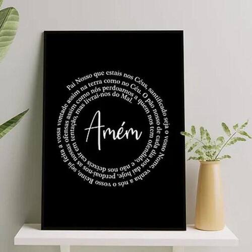 Quadro oração pai nosso espiral - preto e branco 24x18cm - com vidro Moldura: madeira branca Informações do produto tire todas as suas dúvidas no descritivo abaixo: decoração para quarto, sala, cozinha, escritório, área gourmet e muito mais. Chega de paredes vazias medidas - cada peça tem 24x18cm a5 . Material do papel - papel fotográfico brilhante de altíssima resolução acabamento - todos os quadros são acompanhados de vidro para proteção da imagem. - moldura em madeira maciça na cor preta ou branca conforme produto escolhido e pendurador . - os quadros são embalados de forma segura com plástico bolha com camada dupla de acordo com o tamanho dos quadros. Garantia - garantia de 3 meses. Meu quadro chegou. Como posso fixá-lo Você precisa apenas de um martelo e um prego, pois os quadros já vão acompanhados de penduradores. Esta é a forma mais indicada. Como posso limpar meu quadro A limpeza é feita como um móvel comum da sua casa. Apenas um pano seco ou espanador são suficientes para tal Ean: 7892139514519