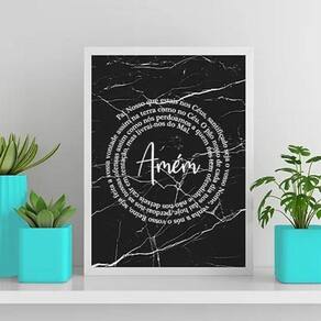 Quadro oração pai nosso fundo mármore 33x24cm - com vidro
