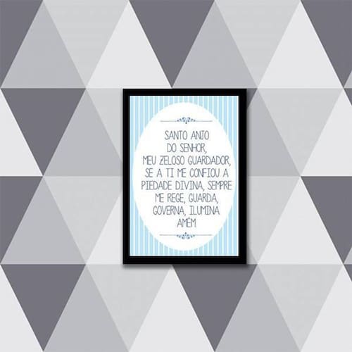 Quadro oração santo anjo do senhor 24x18cm Moldura: madeira preta Informações do produto tire todas as suas dúvidas no descritivo abaixo: decoração para quarto, sala, cozinha, escritório, área gourmet e muito mais. Chega de paredes vazias medidas - cada peça tem 24x18cm a5 . Material do papel - papel fotográfico brilhante de altíssima resolução acabamento - todos os quadros são acompanhados de uma película de acetato para proteção da imagem. - moldura em madeira maciça na cor branca e pendurador móvel que pode ser retirado facilmente caso deseje fixar com fita dupla face. - os quadros são embalados de forma segura com plástico bolha com camada dupla de acordo com o tamanho dos quadros. - de 3 meses prazo de envio pedimos 24 horas úteis no máximo para enviar seu pedido após o envio, segue os prazos normais dos correios, cerca de 7 dias úteis exceto para norte e nordeste, que pode ser de até 14 dias úteis. Em diversas cidades, este prazo normalmente é reduzido, mas depende do prazo dos correios. Meu quadro chegou. Como posso fixá-lo Você precisa apenas de um martelo e um prego, pois os quadros já vão acompanhados de penduradores. Esta é a forma mais indicada. Caso prefira, você pode utilizar uma fita dupla face neste caso, sugerimos de alta qualidade para evitar que descole e seu quadro caia . Como posso limpar meu quadro A limpeza é feita como um móvel comum da sua casa. Apenas um pano seco ou espanador são suficientes para tal Ean: 7892091053880