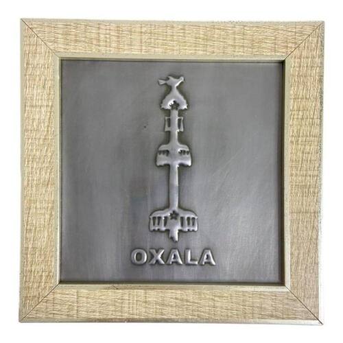 Quadro Orixá Oxalá Em Aço E Madeira Carvalho 16,5X16,5Cm