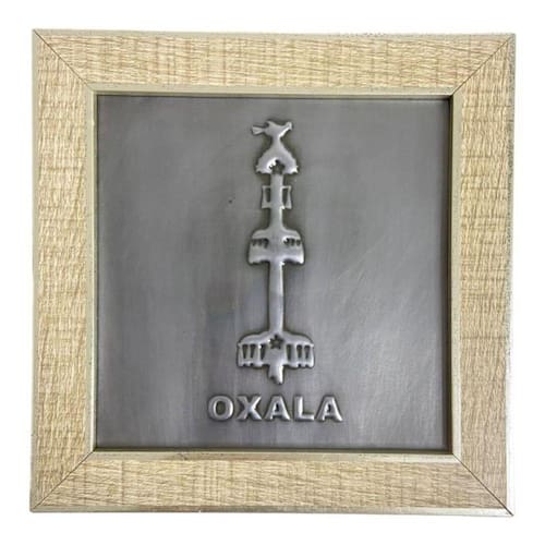 Eleve a harmonia e a paz em seu espaço com este sublime quadro do Orixá Oxalá. Criado com maestria, este quadro artesanal de 16,5x16,5cm combina a delicadeza do aço com a solidez da madeira de carvalho, resultando em uma peça de beleza atemporal e significado espiritual profundo.