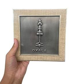 Quadro Orixá Oxalá Em Aço e Madeira Carvalho 16,5x16,5cm