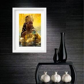 Quadro orixá oxum moedas de ouro - 60x48cm Moldura: madeira branca Informações do produto tire todas as suas dúvidas no descritivo abaixo: decoração para quarto, sala, cozinha, escritório, área gourmet e muito mais. Chega de paredes vazias medidas - cada peça tem 60x48cm . Material do papel - papel fotográfico brilhante de altíssima resolução acabamento - todos os quadros são acompanhados de vidro para proteção da imagem. - moldura em madeira maciça na cor preta ou branca conforme produto escolhido e pendurador. - paspatur branco com 7cm de largura - os quadros são embalados de forma segura com plástico bolha com camada dupla de acordo com o tamanho dos quadros. Garantia - garantia de 3 meses. Meu quadro chegou. Como posso fixá-lo Você precisa apenas de um martelo e um prego, pois os quadros já vão acompanhados de penduradores. Esta é a forma mais indicada. Como posso limpar meu quadro A limpeza é feita como um móvel comum da sua casa. Apenas um pano seco ou espanador são suficientes para tal