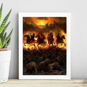 Quadro os quatro cavalheiros do apocalipse 33x24cm Moldura: madeira preta Informações do produto tire todas as suas dúvidas no descritivo abaixo: decoração para quarto, sala, cozinha, escritório, área gourmet e muito mais. Chega de paredes vazias medidas - cada peça tem 33x24cm a4 . Material do papel - papel fotográfico brilhante de altíssima resolução acabamento - todos os quadros são acompanhados de uma película de acetato para proteção da imagem. - os quadros são embalados de forma segura com plástico bolha com camada dupla de acordo com o tamanho dos quadros. Garantia - garantia de 3 meses. Meu quadro chegou. Como posso fixá-lo Você precisa apenas de um martelo e um prego, pois os quadros já vão acompanhados de penduradores. Esta é a forma mais indicada. Caso prefira, você pode utilizar uma fita dupla face neste caso, sugerimos de alta qualidade para evitar que descole e seu quadro caia . Como posso limpar meu quadro A limpeza é feita como um móvel comum da sua casa. Apenas um pano seco ou espanador são suficientes para tal