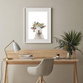 Quadro ovelha baby - 60x48cm Moldura: madeira branca Informações do produto tire todas as suas dúvidas no descritivo abaixo: decoração para quarto, sala, cozinha, escritório, área gourmet e muito mais. Chega de paredes vazias medidas - cada peça tem 60x48cm . Material do papel - papel fotográfico brilhante de altíssima resolução acabamento - todos os quadros são acompanhados de vidro para proteção da imagem. - moldura em madeira maciça na cor preta ou branca conforme produto escolhido e pendurador. - paspatur branco com 7cm de largura - os quadros são embalados de forma segura com plástico bolha com camada dupla de acordo com o tamanho dos quadros. Garantia - garantia de 3 meses. Meu quadro chegou. Como posso fixá-lo Você precisa apenas de um martelo e um prego, pois os quadros já vão acompanhados de penduradores. Esta é a forma mais indicada. Como posso limpar meu quadro A limpeza é feita como um móvel comum da sua casa. Apenas um pano seco ou espanador são suficientes para tal