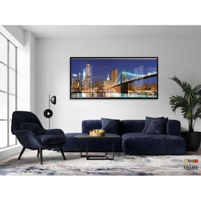 Quadro Paisagem De Nova York Vista Da Ponte Brooklyn 130x60 Moldura Preta 2x2