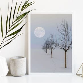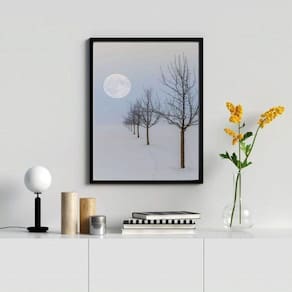 O Quadro Paisagem Neve Árvores Lua 24X18Cm é perfeito para decorar qualquer ambiente da sua casa, seja quarto, sala, cozinha, escritório, área gourmet e muito mais. Com medidas de 24x18cm A5 , cada peça é feita em papel fotográfico brilhante de altíssima resolução, garantindo uma imagem nítida e de qualidade.